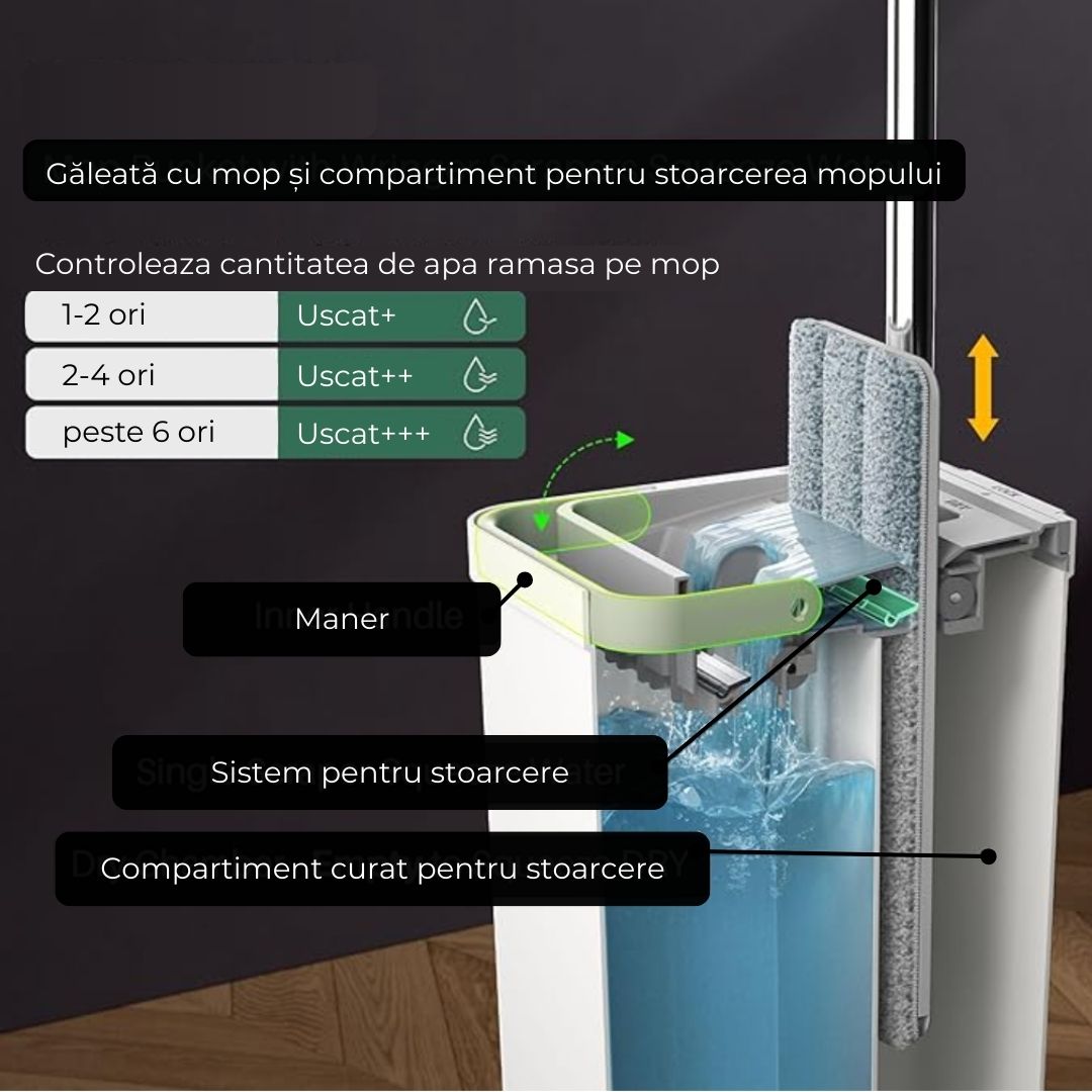 Mopul SuperBob este conceput pentru o curățenie rapidă, eficientă și igienică, fără să atingi apa murdară.